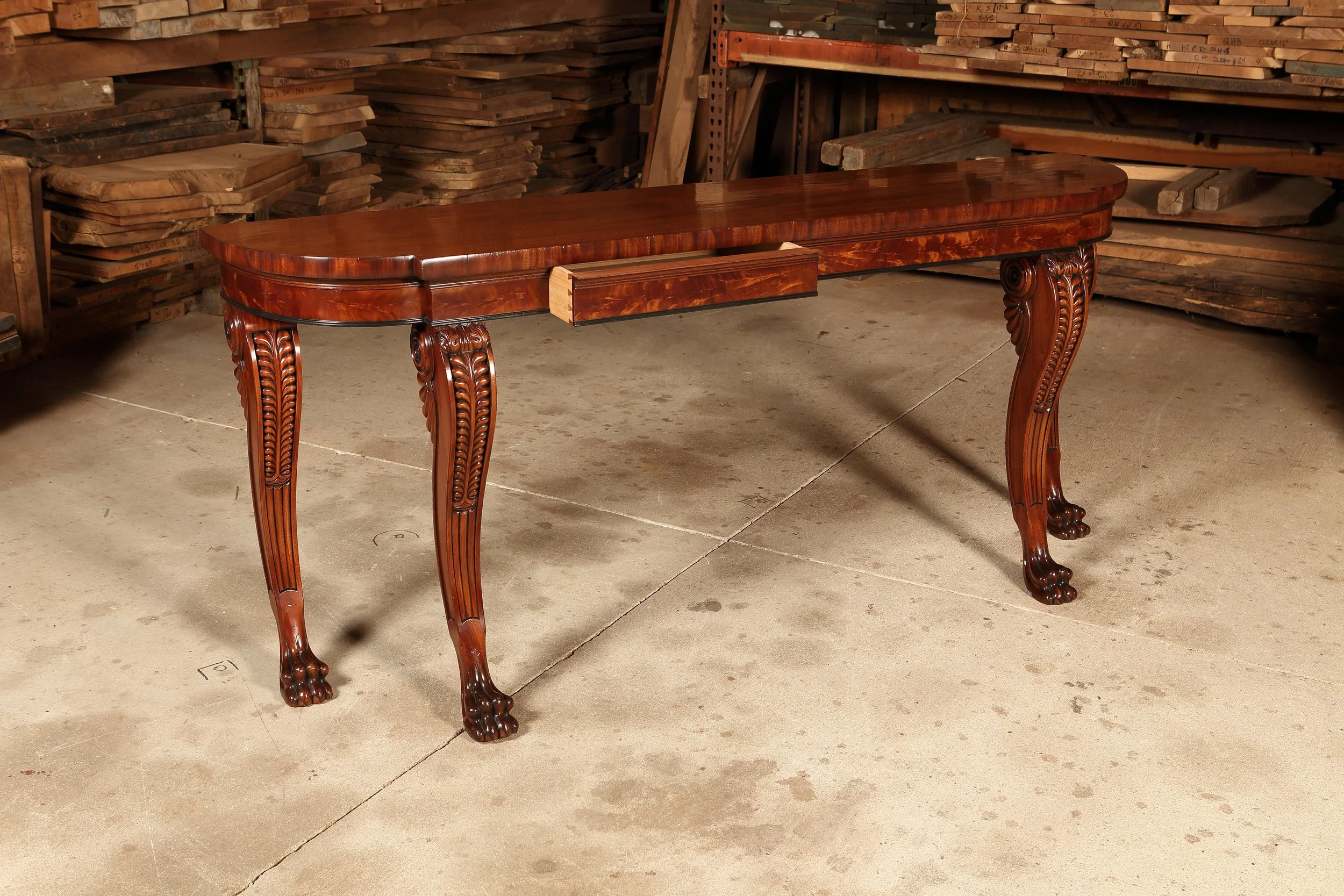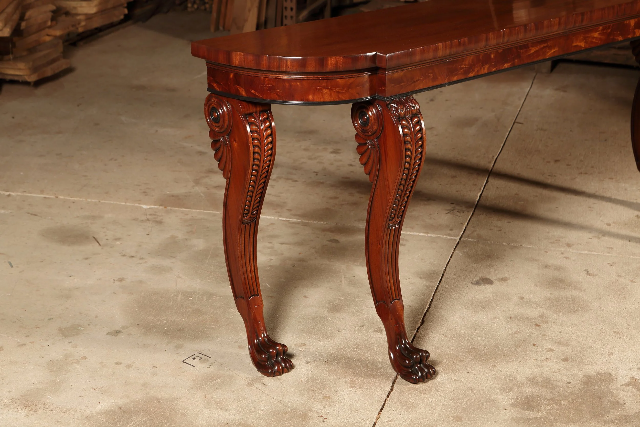 Irish Regency Console Table T159A mahogany and crotch mahogany.