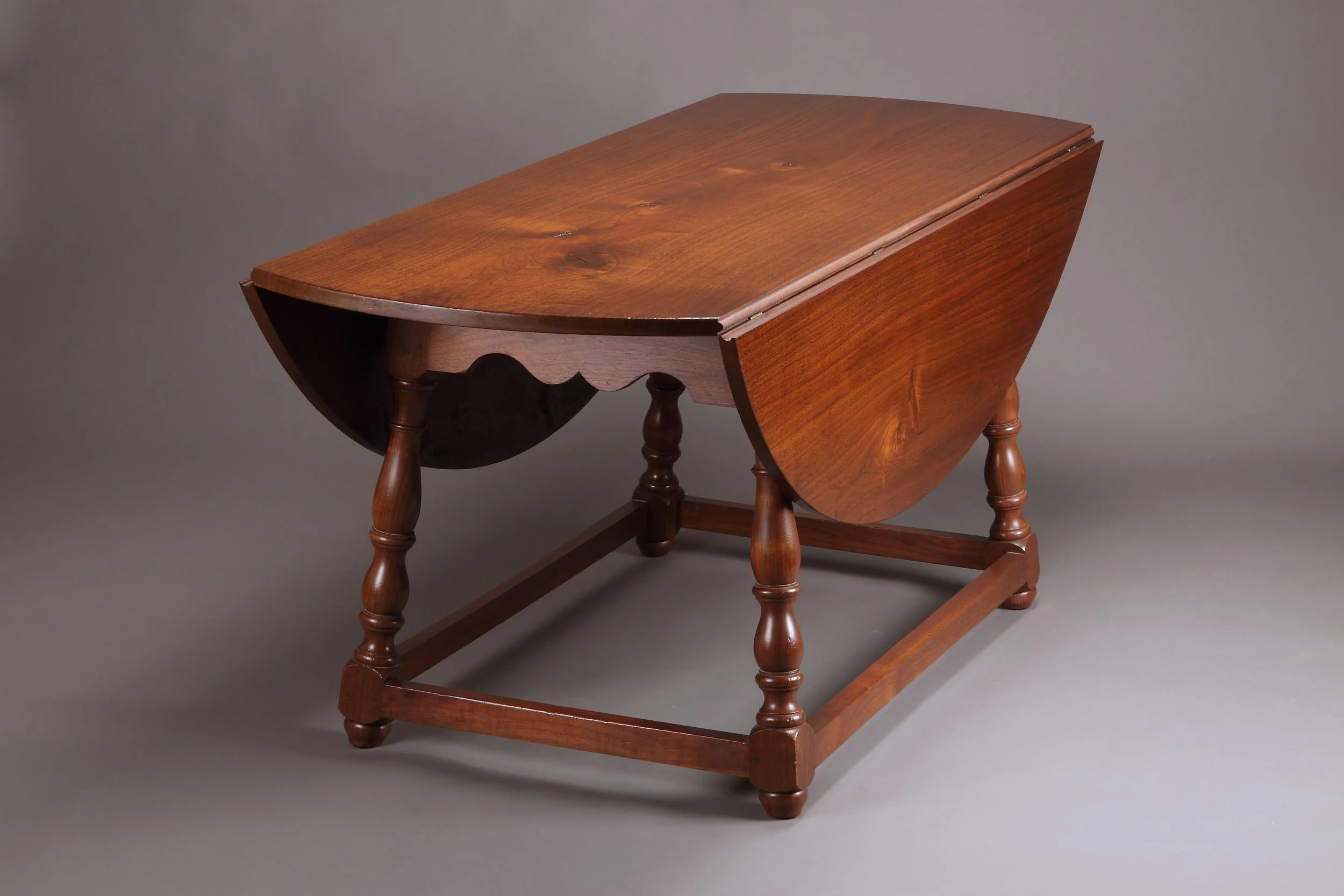 Splayed Leg Drop Leaf Dining Table T132 walnut with aged finish 60" x 70"